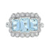 Three Stone Octagon Shape Emerald Cut Blue Aquamarine Diamond Platinum Halo Ring