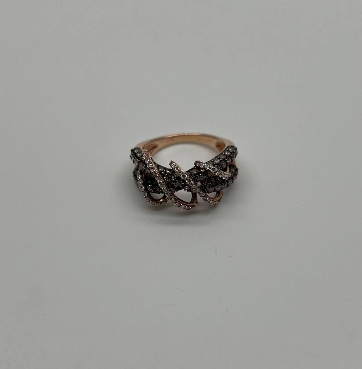 Interwoven Pave Set Champagne Brown White Diamonds 14K Rose Gold Statement Ring