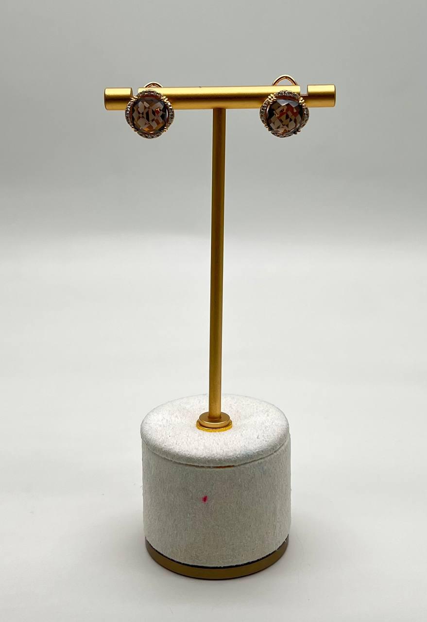 Round Shape Brown Smoky Quartz 14K Yellow Gold Diamonds Halo Set Stud Earrings