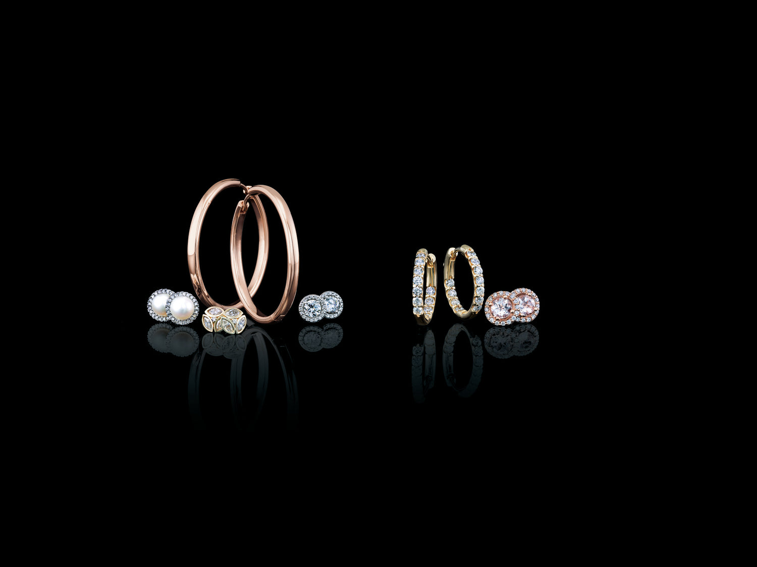 Серьги-гвоздики из розового золота 18 карат с белым опалом и коричневыми бриллиантами персикового цвета и морганитами- Regular price