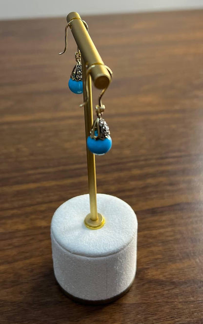 Turquoise Drop Champagne Diamonds Pave Drop 14K Yellow Gold Earrings